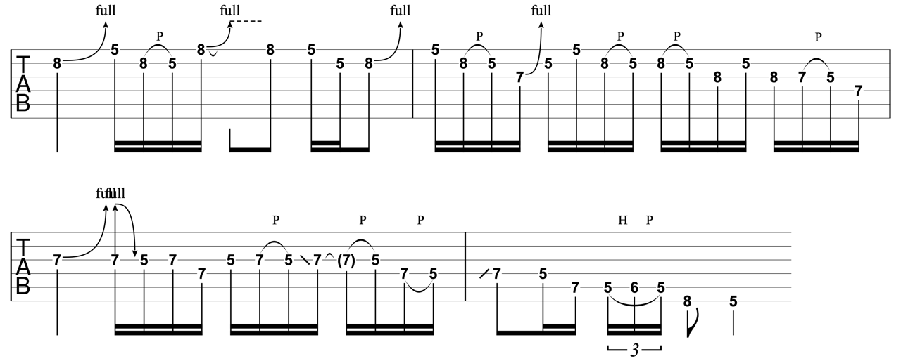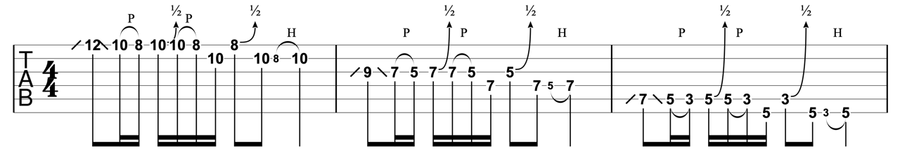 ここでも大切なのは、先ほどと同じようにスライド・チョーキング・ハンマリングです。