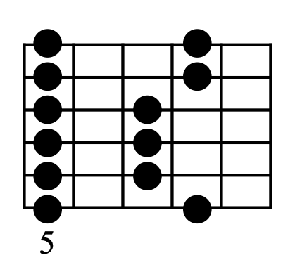 最初に紹介するのは、最も基本的なAマイナーペンタトニックスケールの「2+3」のポジションです。