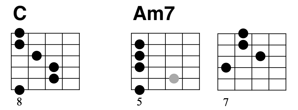 まずは1行目のCとAm7です。